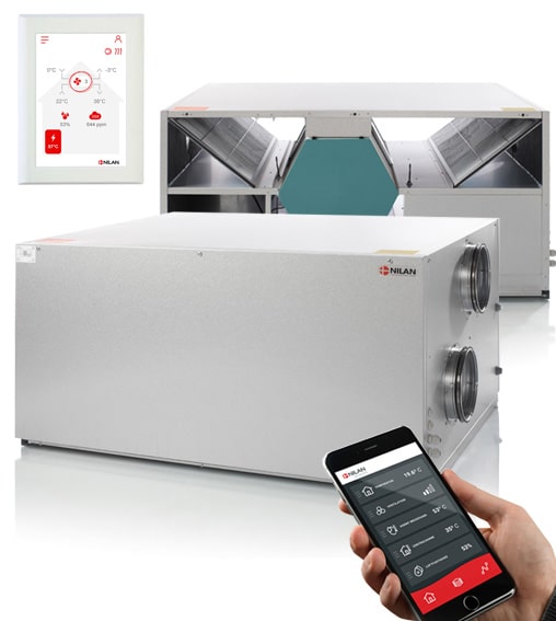 | Vakio-ominaisuudet | Vastavirta-LTO Ilmanvaihto (EC-puhaltimet) Tuloilman lämmitys Bypass-viilennys Sisäiset ilmansuodattimet Suodatinvahti Älykäs kosteudenhallinta Kosteusanturi CTS 602 -ohjaus HMI-ohjauspaneeli |